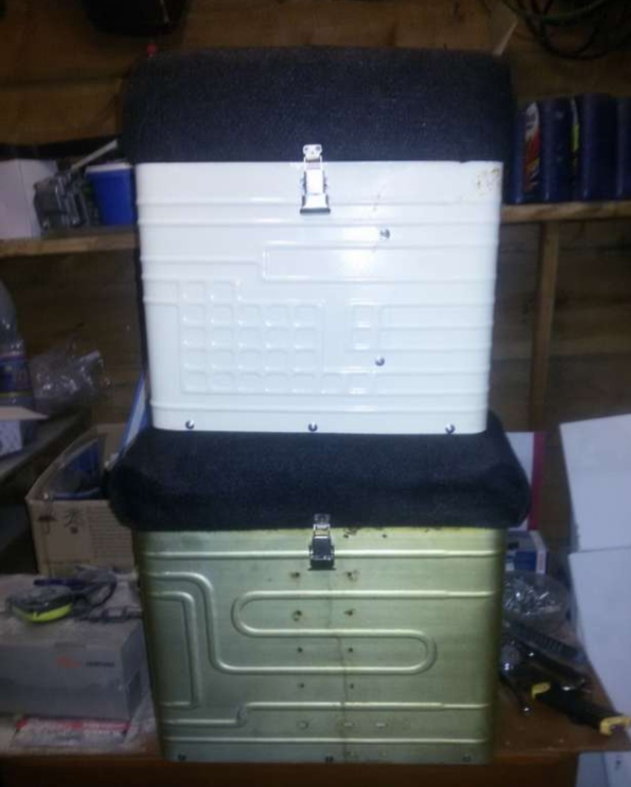 Старую АКБ также переделать в рыбацкий ящик. Здесь, как в случае с морозильной камерой, потребуется небольшая доработка. Чтобы ящик получился достаточно вместительным, необходимо брать большой аккумулятор от грузовой техники. Из батареи потребуется осторожно слить остатки электролита, открутив крышки, после чего проветрить его от паров кислоты.