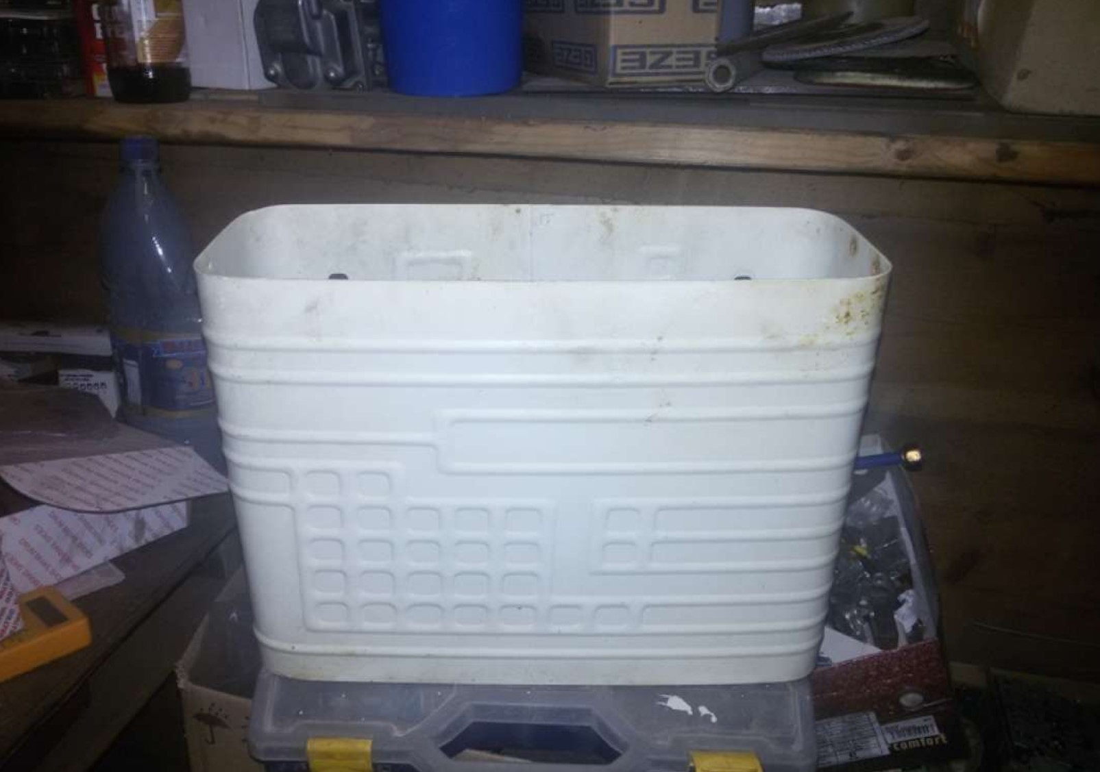 Ну вот настал час ехать на рыбалку и надо было то в чем рыба не испортится. Хотел давно такой но как то дороговато за 2 тыс + выходят, решил сделаю сам. И так пошел в Бауцентр взял ящик пластиковый на 25 литров (549 руб.) Поехал в местный строительный магазин купил подложку с фольгой 10мм. (100р/м) взял 3метра с запасом чтоб было ( а так ушло 1,5м) .И клей Момент 2шт больших тюбика (109р/шт) . Проклеил с двух сторон. Швы внутри ящика промазал прозрачным силиконовым герметикам. Ну в общем, что получилось смотрите ниже, после рыбалки отпишусь как он холод держит. Итого: 1067руб. Остаток 1,5 метра подложки + клей больше половины тюбика.