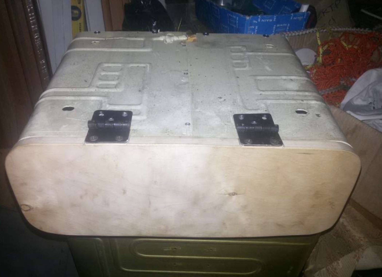 Вчера приклепал петли к крышке, будут ещё и защелки до открытия сезона ещё 2 месяца.